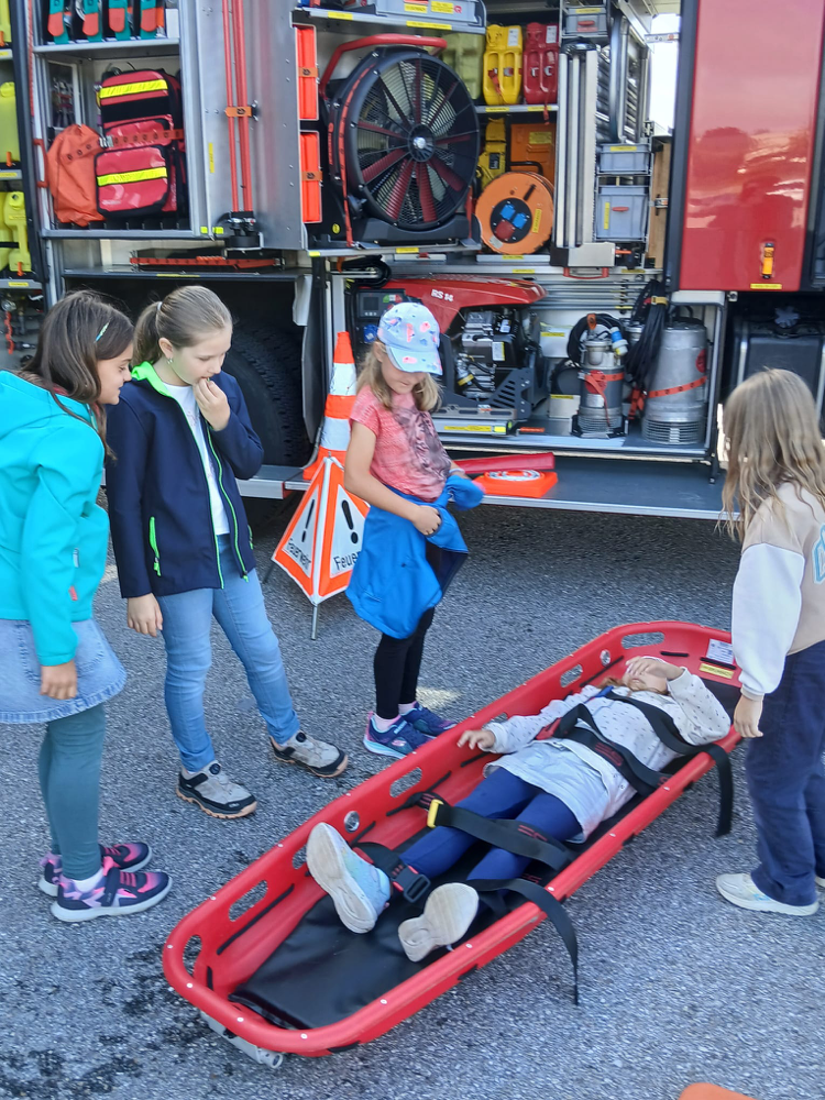 Gleich in der ersten Schulwoche wurde die 3. und 4. Klasse von der Freiwilligen Feierwehr Grünbach zu einer Schnupperstunde eingeladen. Nach einem kurzen Informationfilm über die Aufgaben und die Bedeutung der Feuerwehr durften sich alle das Feuerwehrauto ganz genau anschauen, die Kübelspritze und das Funkgerät ausprobieren. Alles war sehr interessant und auch lustig! Vielen Dank den Mitgliedern der Feuerwehr, die sich einmal im Jahr die Zeit für solche wertvollen Einheiten nehmen!